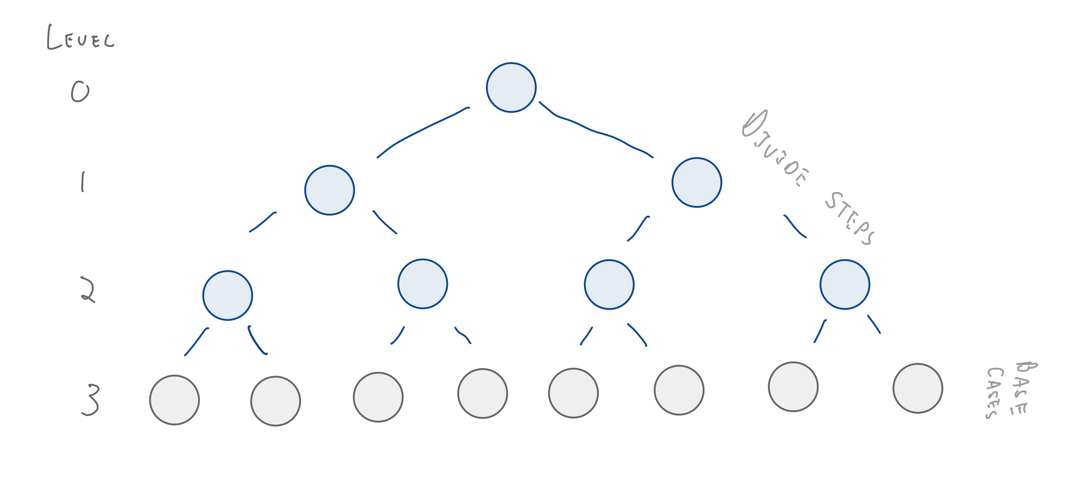 The number of recursive call is the number of nodes in the divide and base cases part of the computation graph.
