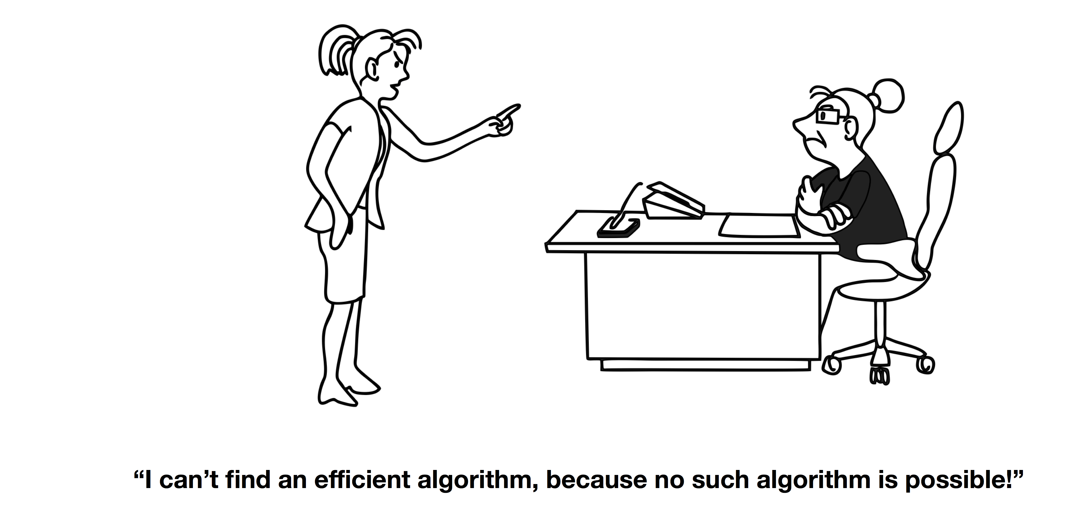 Given a problem $\mathcal{X}$ that we want to solve efficiently, we might not be able come up with a polynomial-work algorithm.